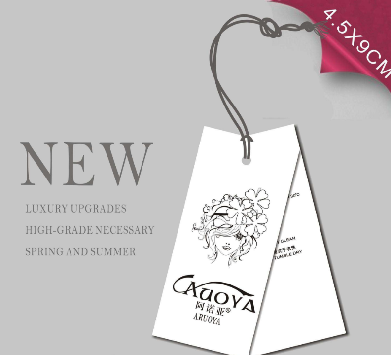 服裝吊牌:即各種服裝上吊掛的牌子,包含一些服裝材質,洗滌注意事項等信息。 從質地上看,吊牌的制作材料大多為紙質,也有塑料的、金屬的。另外,還出現了用全息防偽材料制成的新型吊牌。